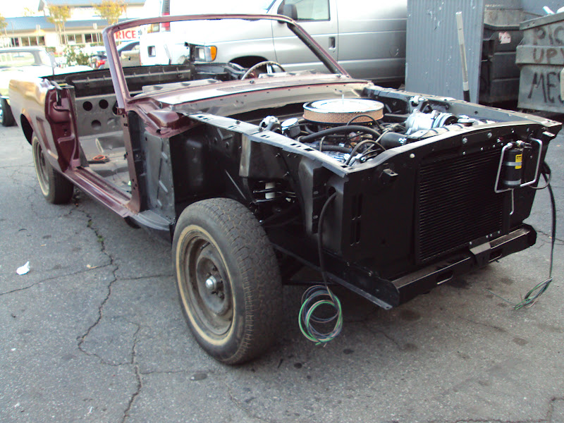 I fixed a small leak, bled the brakes and then actually drove the car around the parking lot as it sits. Now it's back to the body shop to finish the paint and to assemble the rest of the sheet metal. When it comes back to us we will have to install the exhaust, all the trim, the bumpers and lights, and glass. Then it's off to have the interior installed.